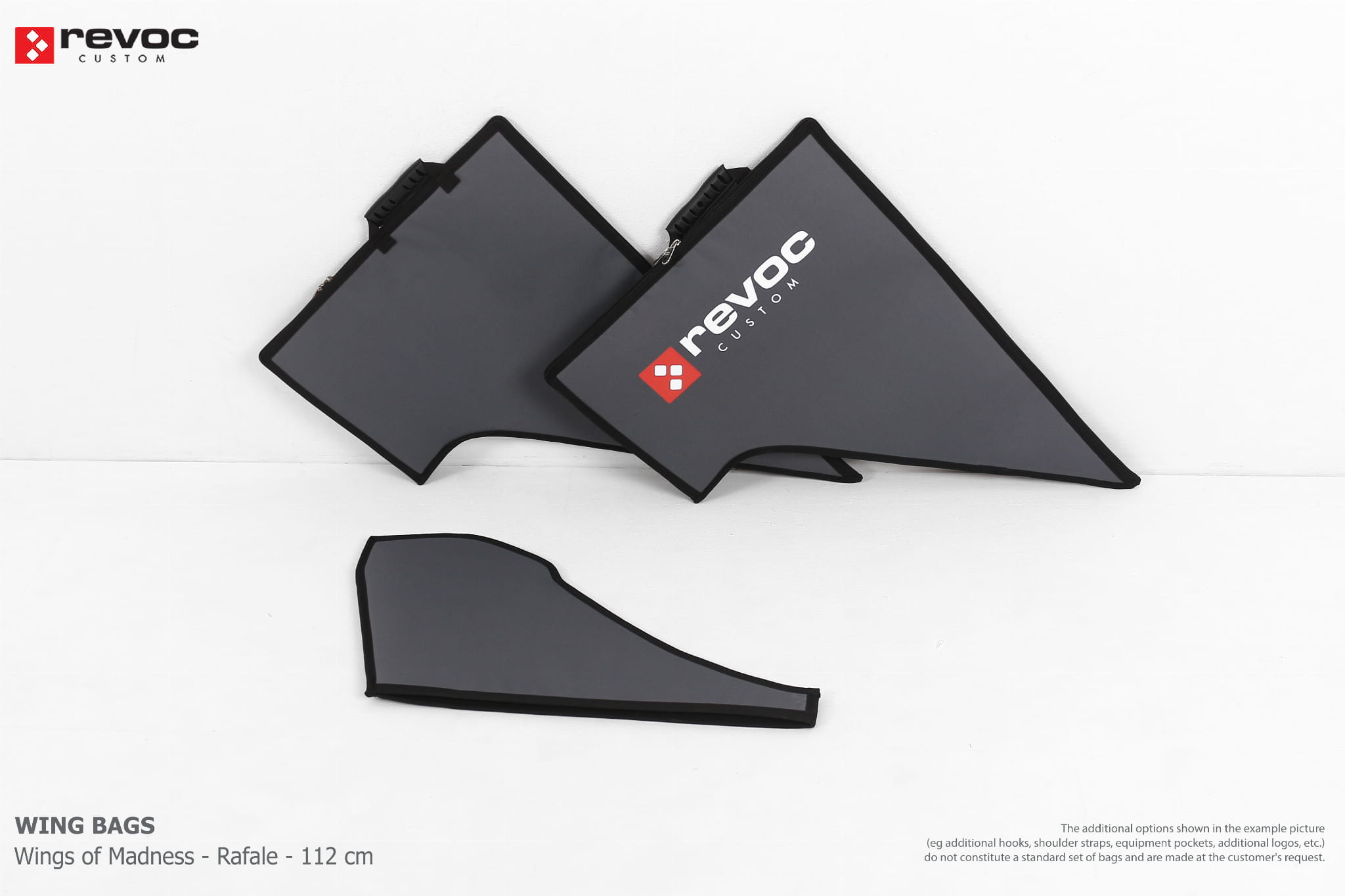 We create custom wing bags especially for you based on your individual order. You can select the colors, add a logo, include the model name on the cover, or choose additional markings and useful options.