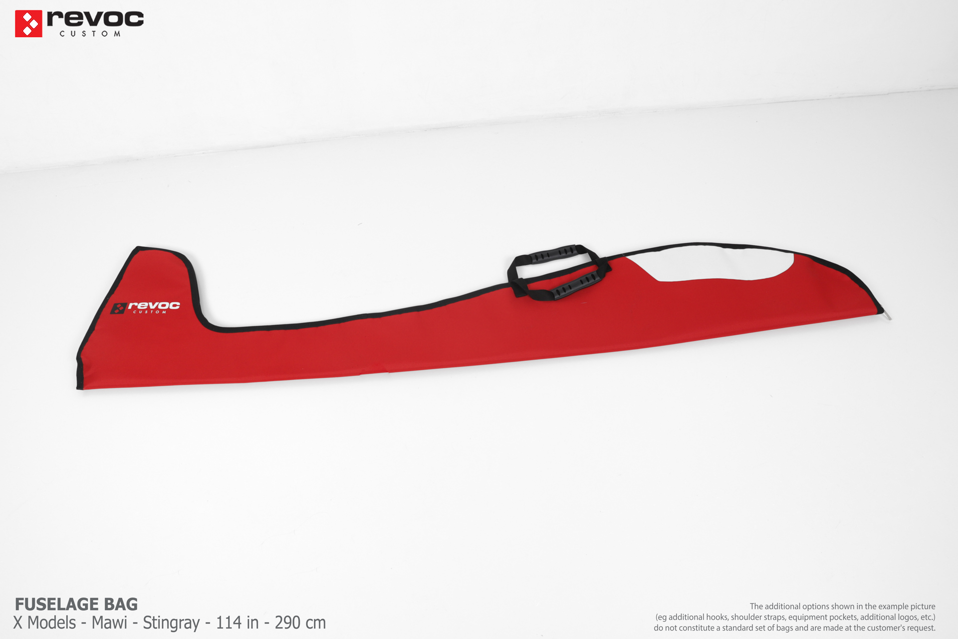 We make bags especially for you on your individual order. You can decide on the colors, choose a logo, put the model name on the cover, additional markings or choose a number of useful additional options. The custom color scheme which is a detailed reproduction of the models painting can be ordered individually - contact us for the offer: revoc@revoc.eu